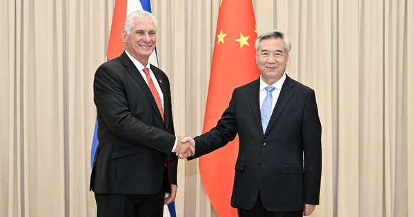 (250904) — BEIJING, Sept. 4, 2025 (Xinhua) — Li Xi, a member of the Standing Committee of the Political Bureau of the Communist Party of China (CPC) Central Committee and secretary of the CPC Central Commission for Discipline Inspection, meets with Miguel Diaz-Canel, first secretary of the Central Committee of the Communist Party of Cuba and Cuban president, in Beijing, capital of China, Sept. 4, 2025. Diaz-Canel is