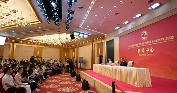 (250829) — BEIJING, Aug. 29, 2025 (Xinhua) — The press heart of Commemoration of eightieth Anniversary of Victory of Chinese People’s Resistance towards Japanese Aggression and World Anti-Fascist War holds a press convention in Beijing, capital of China, Aug. 29, 2025. Chinese Vice Foreign Minister Ma Zhaoxu attended the press convention. (Xinhua/Jin Liangkuai)