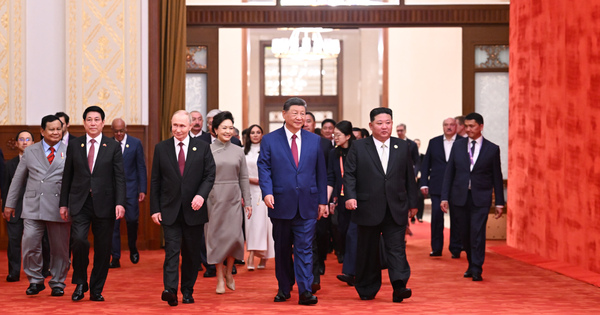 (250903) — BEIJING, Sept. 3, 2025 (Xinhua) — Chinese President Xi Jinping and his spouse Peng Liyuan enter the banquet corridor along with the overseas leaders and their spouses attending a reception commemorating the eightieth anniversary of the victory within the Chinese People’s War of Resistance towards Japanese Aggression and the World Anti-Fascist War on the Great Hall of the People in Beijing, capital of China, Sept. 3, 20