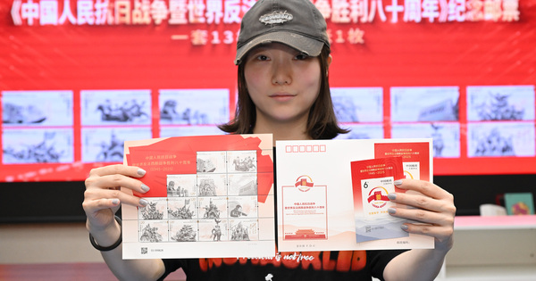 (250903) — BEIJING, Sept. 3, 2025 (Xinhua) — A citizen exhibits the commemorative stamps issued by China Post to mark the eightieth anniversary of the victory within the Chinese People’s War of Resistance Against Japanese Aggression and the World Anti-Fascist War at a stamp firm in Beijing, capital of China, Sept. 3, 2025. A complete of six million stamp units have been issued, with every set containing 13 stamps. Five million miniature sheets have been additionally issued. (Xinhua/Li He)
