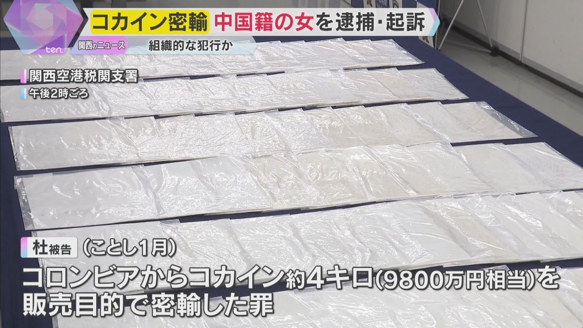 In January, Du Xuexian, 48, a part-time employee, allegedly smuggled roughly 4 kilograms of cocaine — price roughly 98 million yen — hid in a suitcase she had upon arrival at Kansai International Airport from the Netherlands in January. She started her journey in Colombia.
