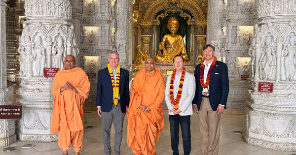 US Envoy to India, Sergio Gor on Wednesday Visited the Bochasanwasi Shri Akshar Purushottam Swaminarayan Sanstha Akshardham temple on the event.