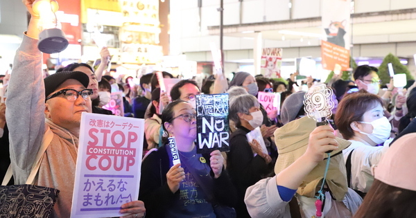 (260406) — TOKYO, April 6, 2026 (Xinhua) — People take part in a protest outdoors the Ikebukuro station in Tokyo, Japan, on April 5, 2026. TO GO WITH “Roundup: Japan opposition parties, citizens rally against gov’t move to ease arms export rules” (Xinhua/Li Ziyue)