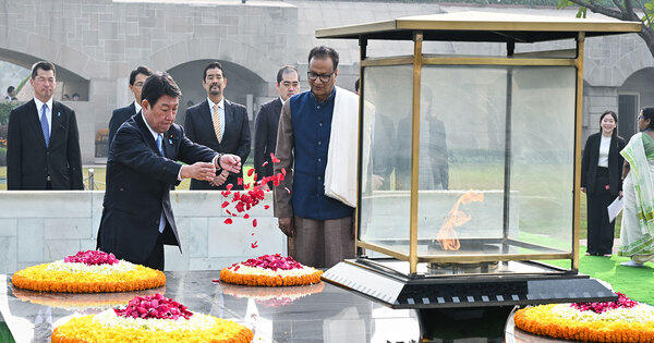 New Delhi [India], January 18 (ANI): Japanese Foreign Minister Toshimitsu Motegi, who was on a three-day go to to India on Saturday, visited Raj Ghat and provided tributes to the Father of the Nation, Mahatma Gandhi
