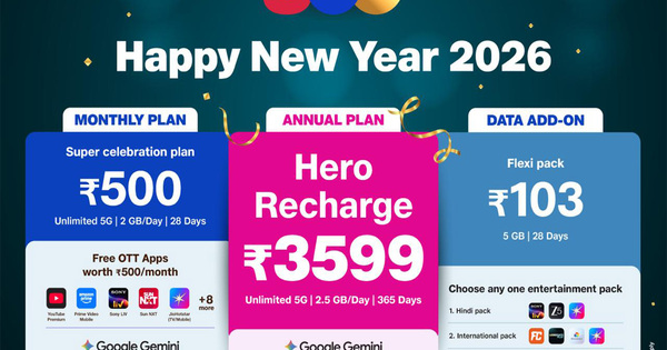 According to a launch, the Hero Annual Recharge priced at Rs 3,599 comes with a validity of 12 months and gives limitless 5G knowledge with 2.5 GB of high-speed knowledge per day, limitless voice calling, and 100 SMS per day.