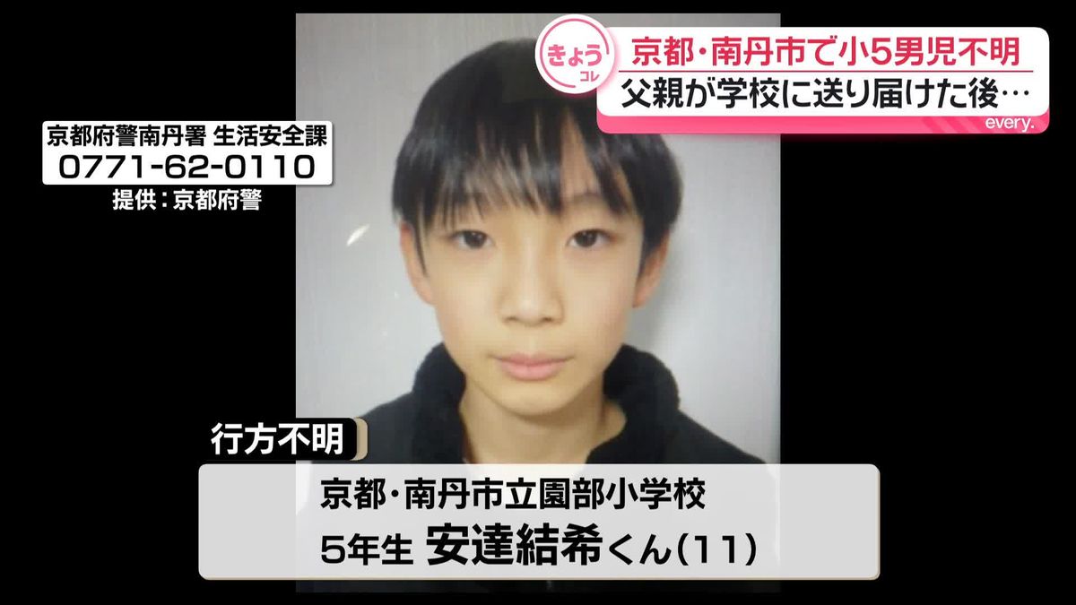 The lacking boy is Yuki Adachi, a fifth-grader at Sonobe Elementary School in Nantan City.