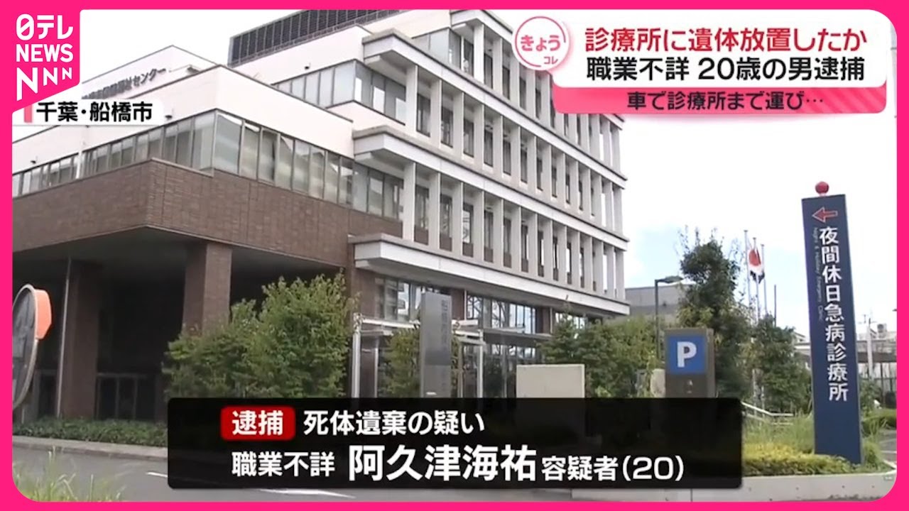 CHIBA (TR) – Chiba Prefectural Police have arrested a 20-year-old man for allegedly leaving the corpse of a second man at a clinic in Funabashi City final month, studies NHK (Sep. 5).