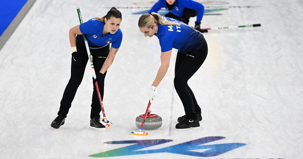 (260215) — CORTINA D’AMPEZZO, Feb. 15, 2026 (Xinhua) — Giulia Zardini Lacedelli (L) and Elena Mathis (R) of Italy compete through the curling girls spherical robin session 5 match between Sweden and Italy on the 2026 Milan-Cortina Winter Olympics in Cortina, Italy, Feb. 14, 2026. (Xinhua/Lian Yi)