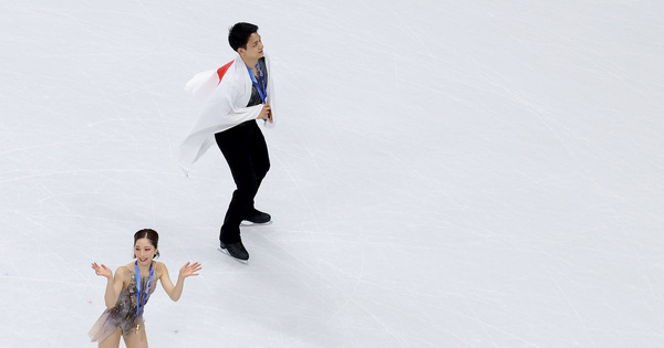 (260217) — MILAN, Feb. 17, 2026 (Xinhua) — Riku Miura/Ryuichi Kihara of Japan wave to the spectators after the victory ceremony for Figure Skating Pair Skating on the Milan-Cortina 2026 Olympic Winter Games in Milan, Italy, Feb. 16, 2026. (Xinhua/Li Ming)