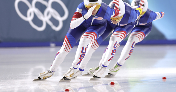 (260217) — MILAN, Feb. 17, 2026 (Xinhua) — Giorgia Birkeland, Brittany Bowe and Mia Manganello of the United States compete throughout the pace skating girls’s group pursuit semifinal between the United States and Canada on the Milan-Cortina 2026 Olympic Winter Games in Milan, Italy, Feb. 17, 2026. (Xinhua/Du Xiaoyi)