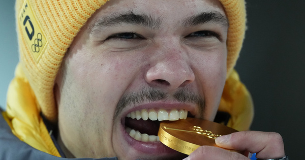 (260210) — PREDAZZO, Feb. 10, 2026 (Xinhua) — Gold medallist Philipp Raimund of Germany bites the medal in the course of the awarding ceremony for the Ski Jumping Men’s Normal Hill Individual of the 2026 Milan-Cortina Winter Olympics in Predazzo, Italy, Feb. 9, 2026. (Xinhua/Meng Yongmin)