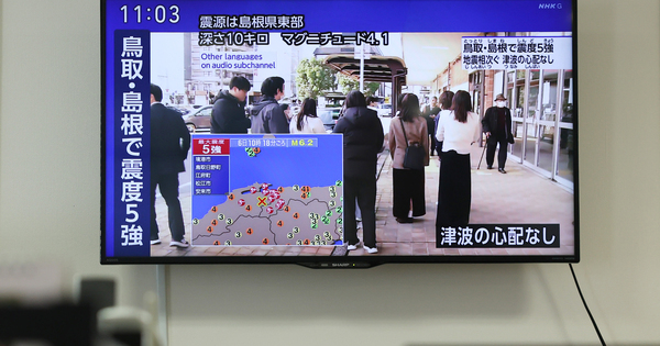 (260106) — TOKYO, Jan. 6, 2026 (Xinhua) — This photograph taken on Jan. 6, 2026 reveals a tv broadcasting the news of an earthquake occurred in Shimane Prefecture, in Tokyo, Japan. An earthquake with a preliminary magnitude of 6.2 struck Shimane Prefecture in western Japan on Tuesday, with no tsunami warning issued, the nation’s climate company mentioned. (Xinhua/Jia Haocheng)