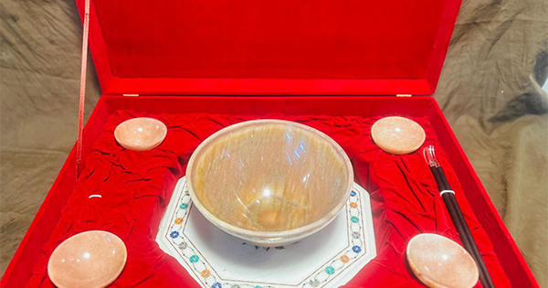 The classic valuable stone bowls set with silver chopsticks are a mix of Indian artistry and Japanese culinary custom. Featuring a big brown moonstone bowl accompanied by 4 smaller ones and silver chopsticks, this piece attracts inspiration from Japan’s donburi and soba rituals.