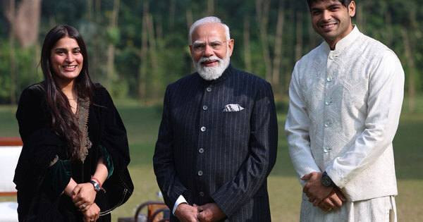Taking to X, PM Modi wrote, ‘Met Neeraj Chopra and his spouse, Himani Mor at 7, Lok Kalyan Marg earlier as we speak. We had an awesome interplay on varied points together with sports activities after all! @Neeraj_chopra1.’