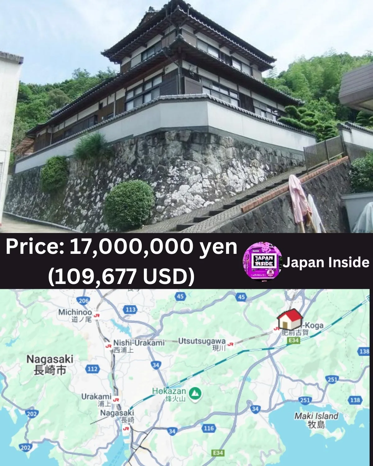The property’s location strikes a stability between tranquility and comfort. It’s a mere 10-minute stroll from the Koga-cho bus cease and a 12-minute stroll from Hizen-Koga Station on the JR Nagasaki Main Line, guaranteeing easy accessibility to the town heart and past. This accessibility is additional enhanced by its proximity to main roadways, with the Nagasaki Bypass and Nagasaki Expressway entrance simply 2,000 meters away, or a fast 4-minute drive.