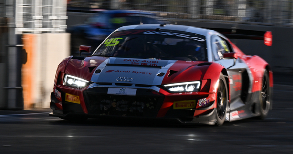 (251019) — BEIJING, Oct. 19, 2025 (Xinhua) — Chinese drivers Cheng Congfu/Yu Kuai of FAW Audi Sport Asia Team Phantom compete throughout the GT World Challenge Asia Race 2 on the Beijing Street Circuit in Beijing Economic-Technological Development Area (E-Town) of Beijing, China, Oct. 19, 2025. (Xinhua/Xia Yifang)