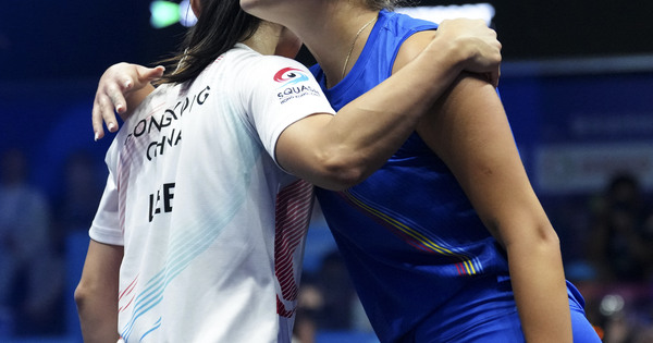 (250808) — CHENGDU, Aug. 8, 2025 (Xinhua) — Lee Ka Yi (L) of China’s Hong Kong hugs with Andreea Ghiorghisor of Romania after the ladies’s singles spherical of 32 match of Squash occasion on the World Games 2025 in Chengdu, southwest China’s Sichuan Province, Aug. 8, 2025. (Xinhua/Li Xulun)