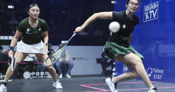 (251116) — SHANGHAI, Nov. 16, 2025 (Xinhua) — Amina Orfi (R) competes in the course of the ladies’s singles remaining match between Watanabe Satomi of Japan and Amina Orfi of Egypt on the China Open squash match in Shanghai, east China, Nov. 16, 2025. (Xinhua/Wang Xiang)