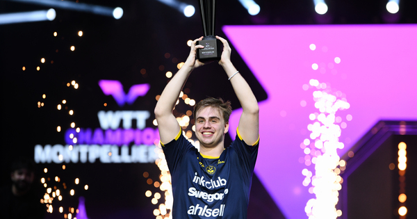 (251103) — MONTPELLIER, Nov. 3, 2025 (Xinhua) — Gold medalist Truls Moregard of Sweden poses with the trophy for photographs throughout the awarding ceremony for males’s singles last in opposition to Matsushima Sora of Japan on the WTT Champions Montpellier 2025 in Montpellier, France, on Nov. 2, 2025. (Xinhua/Lian Yi)