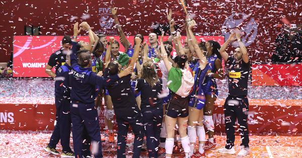 (250818) — SURABAYA, Aug. 18, 2025 (Xinhua) — Players of Italy have a good time throughout the awarding ceremony after profitable the ultimate between Italy and Japan on the FIVB Volleyball Women’s U21 World Championship in Surabaya, East Java province, Indonesia, Aug. 17, 2025. (Xinhua/Cen Yunpeng)